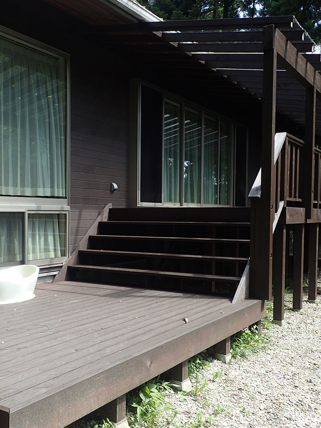 - オーニング付け替え、下屋増設(桧材)、下屋デッキ塗替え